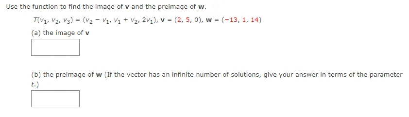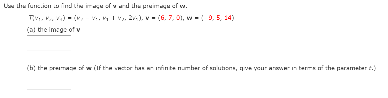 Solved 12 Points Larlinalg8 6 1 001 Use Tne Function Find The Image Of And The Preimage Of W T V1 V2 Vzr Vi V2 2 7 13 A Te Image Afv